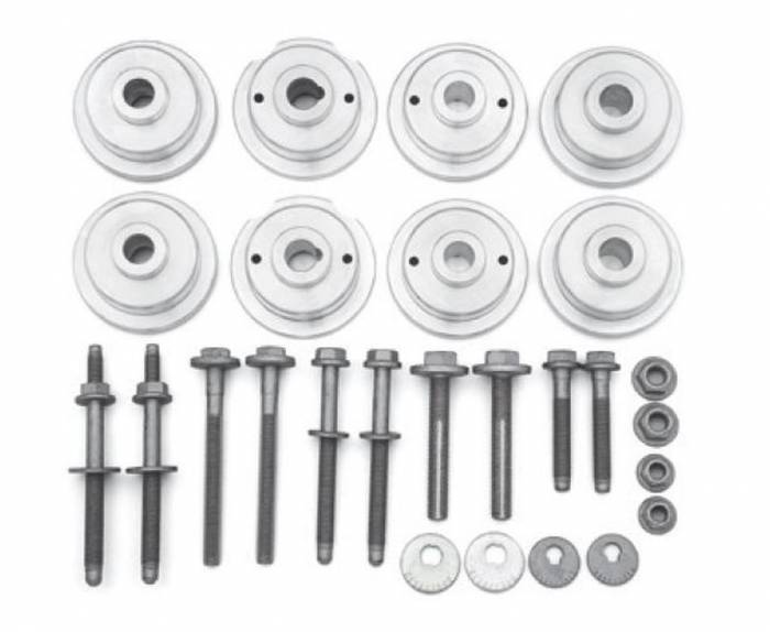 These ZL1 1LE Spec Solid Rear Cradle Mounts are constructed from 6061-T6 aluminum and machined from billet. They replace your vehicle’s standard rubber bushings and add rigidity while reducing suspension compliance for drag strip or track driving applications.